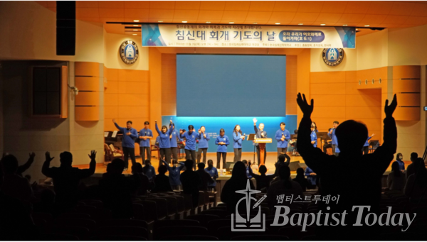 한국침례신학대학교(총장직무대행 김광수)는 11월 3일(목) 저녁 7시부터 9시까지 대학 교단기념대강당에서“오라, 우리가 여호와께로 돌아가자”(호 6:1)란 주제로 2시간 동안 침신공동체의 회개와 회복을 위한 기도회를 개최했다.