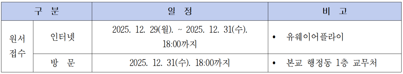 위 일정에 의해 신입생을 모집하는 침신대의 입시 일정은 최종 합격자가 등록하는 2026. 2. 12.에 이르러 종료 됩니다.