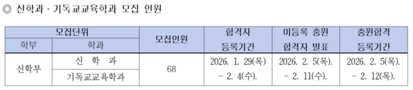 ◎ 신학과 · 기독교교육학과 모집 인원 및 합격자 등록 기간