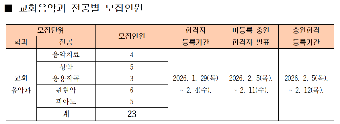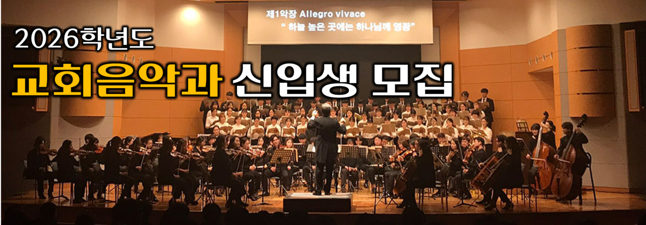 침신대 교회음악과 2026학년도 신입생 모집을 합니다. 이에 응시를 하고자 하는 학생들과 학부모, 그리고 교회에 입학정보를 전합니다.