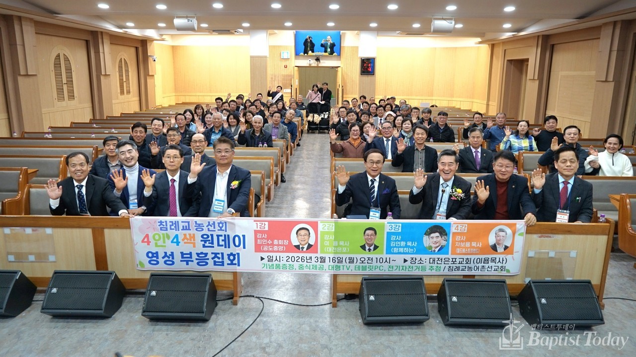 농어촌 교회를 후원하는 것을 목적으로 2012년 10월 22일 대전 한샘교회에서 발기인 모임을 갖고 설립된 [침례교 농어촌선교회(회장 박영재 목사 ㆍ 후원회장 차보용 목사)] 가 2026년 3월 16일 대전은포교회(담임 이욥 목사)에서【4인4색 원데이 영성 부흥집회】를 개최하여 격려하고 합심하여 기도하며 은혜 넘치는 시간을 가졌다.